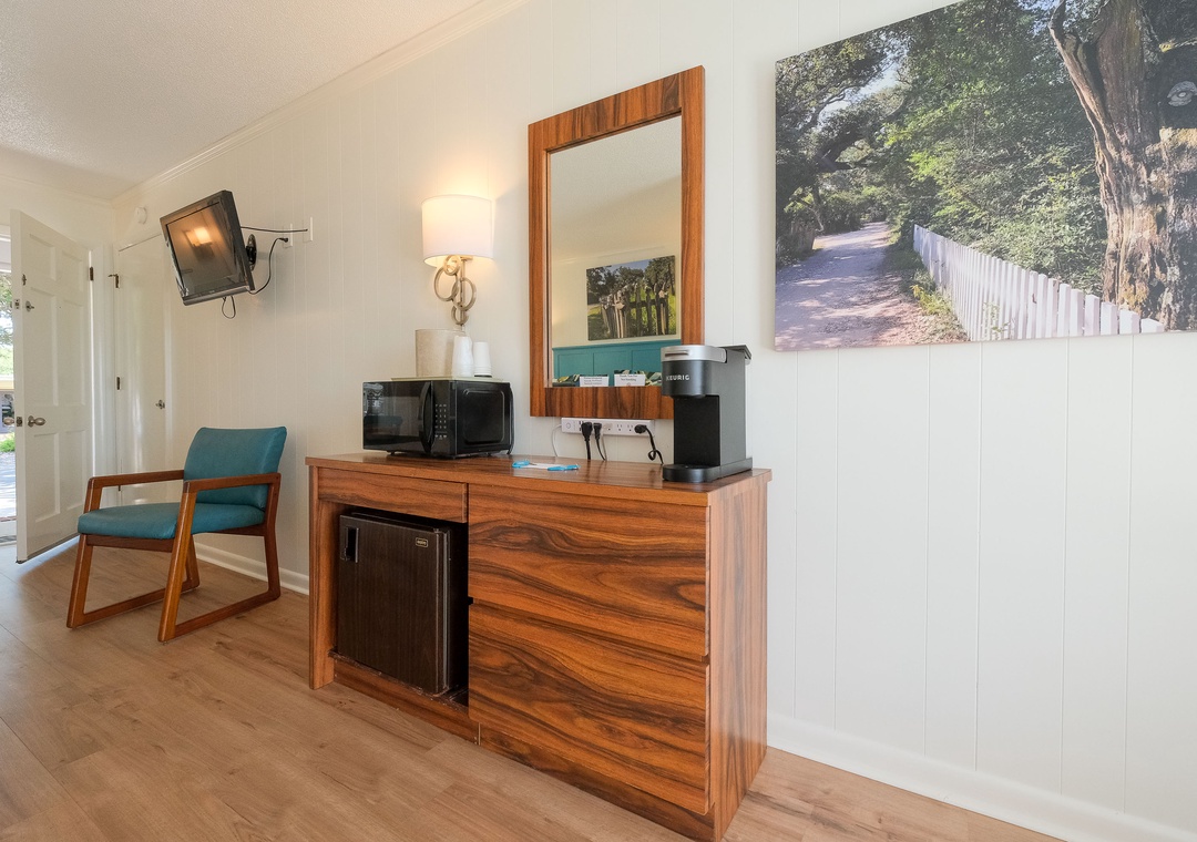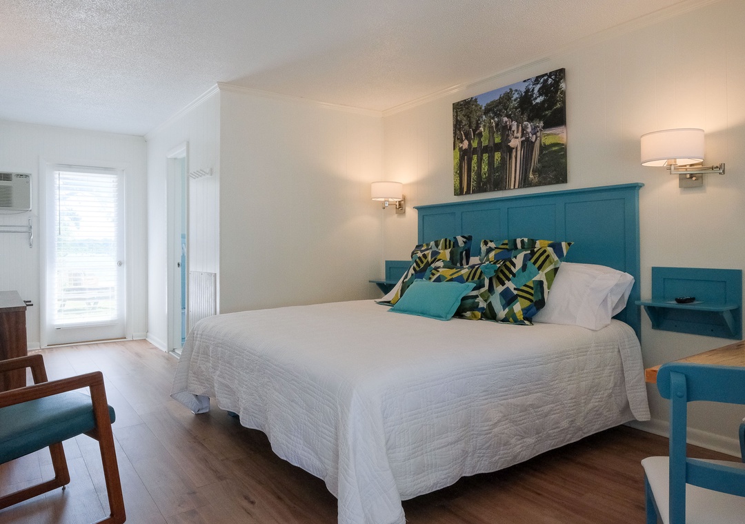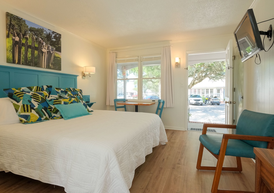 Bluff Shoal Motel is nestled in the shady oak trees at the center of Ocracoke’s village, the property recently completed an entire overhaul; including a new community back deck, the return of our harbor deck, as well as updated room furnishings and amenities!