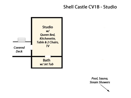 If you have additional people in your group, you may combine rental of this studio with Shell Castle A which offers a private bedroom with King Bed and full master bath with tub and shower. Enjoy a large living room with sleeper sofa, full kitchen, dining area, washer/dryer and a screened porch with convenient access to the swimming pool. This would offer a combined total occupancy of 6 people, including children.