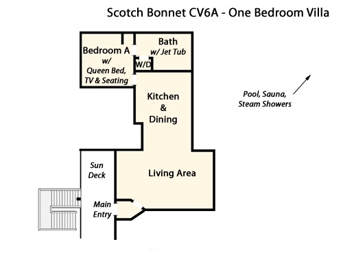 Scotch Bonnet Villa can also be rented with adjoining studio condominiums for larger parties. Please call or email us for further information.