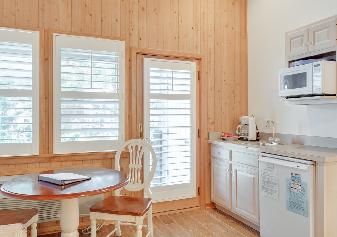 Amenities shared exclusively by guests of The Courtyard Villas and The Castle Bed and Breakfast include an outdoor pool. The pool is open mid April through October. Additional shared amenities include a pool house with a sauna. Outdoor shower.