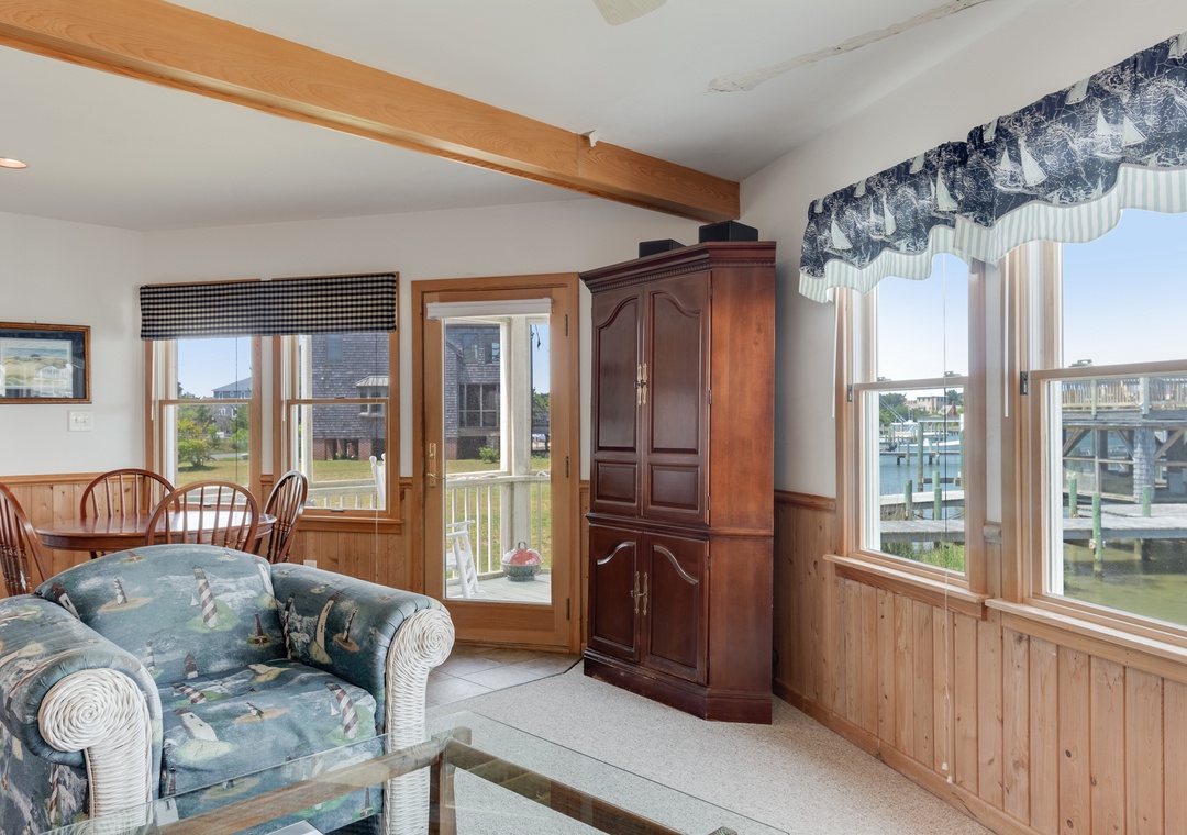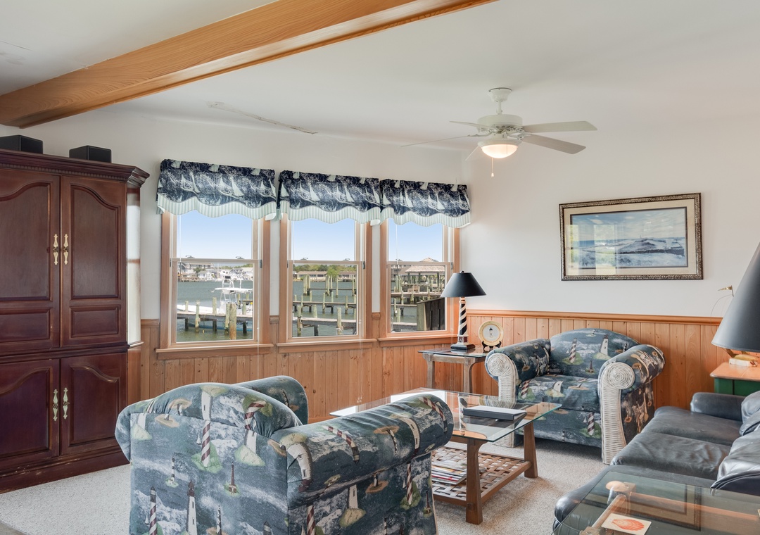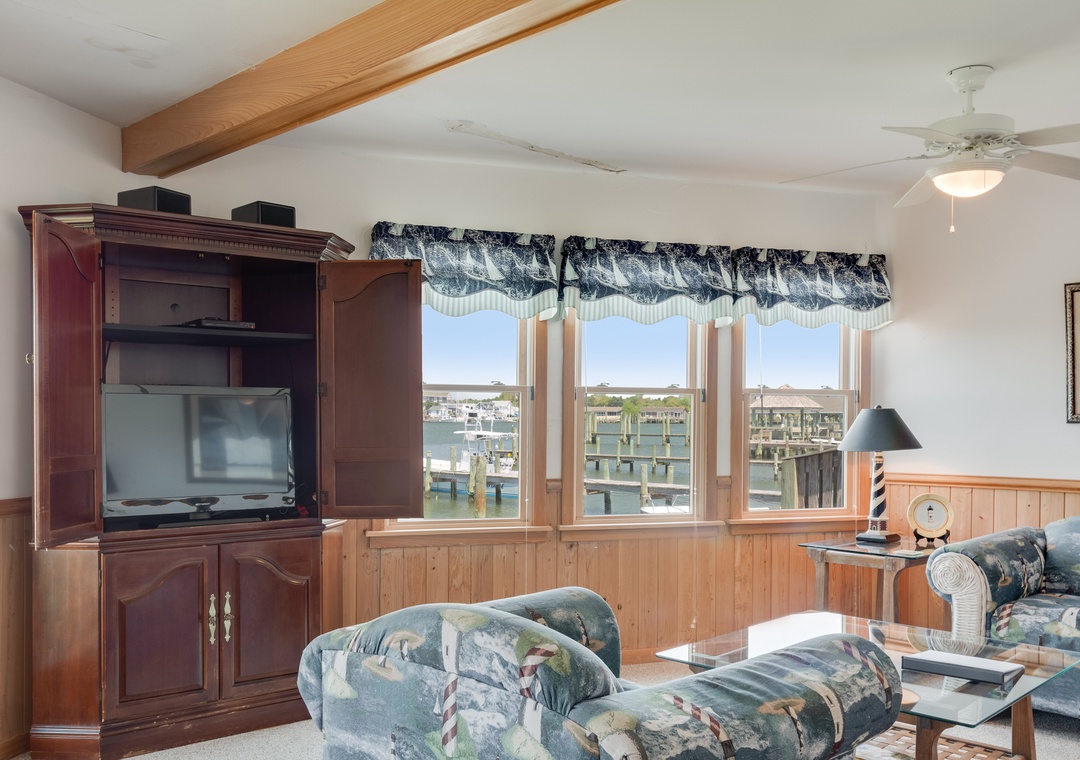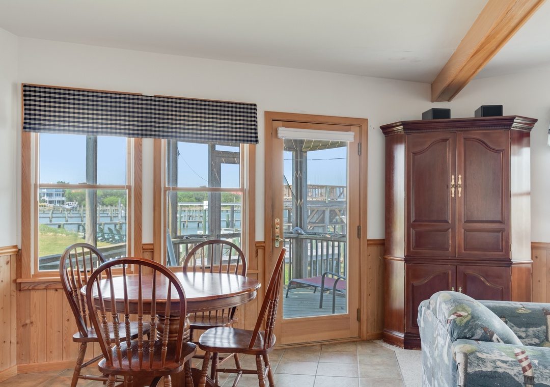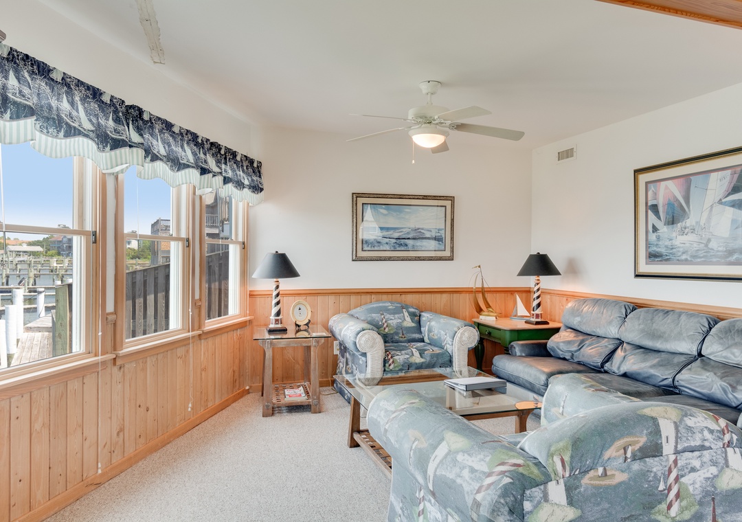 This waterfront two bedroom plus a loft, three full bath Villa is our most often requested Villa by honeymooners! Sitting right on Silver Lake with breathtaking harbor views from the deck, screened porch, and interior, The Net House offers two spacious living and dining areas on separate levels an upper-level full kitchen with dishwasher and ice machine, lower level kitchenette, washer/dryer, wireless internet access, and four TVs. Please note the fireplace is not available for guest use.